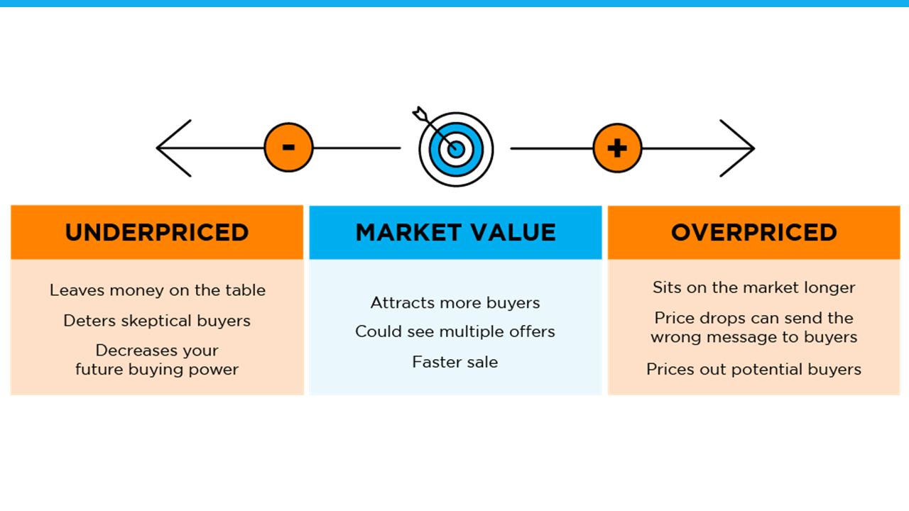 To get a high-level look into the potential downsides of over or underpricing your house and the perks that come with pricing it at market value, see the chart below: